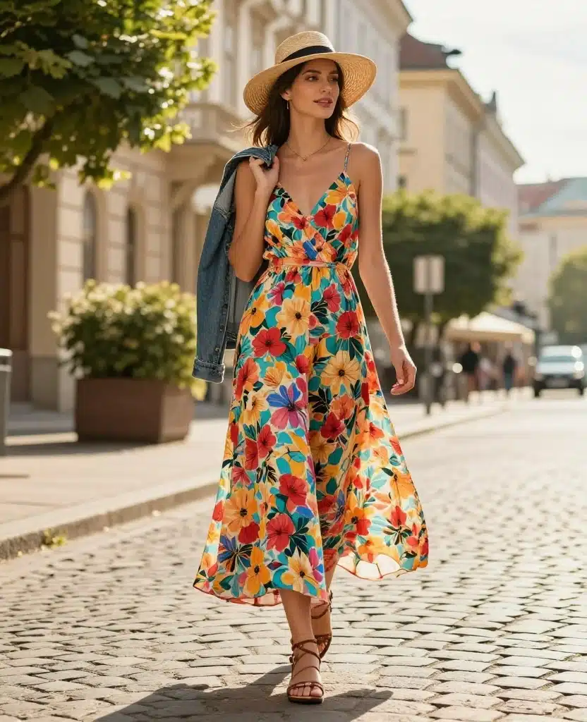 Imagine wandering through Vienna in a vibrant floral maxi, the fabric dancing around your legs as you move.