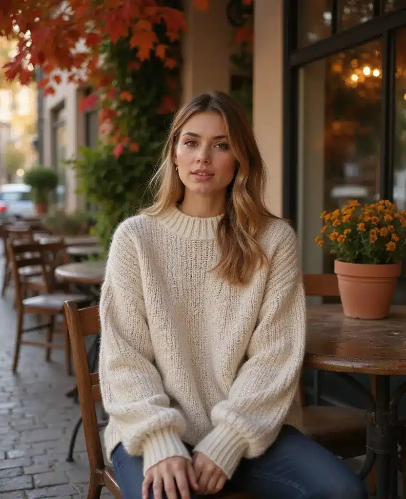If you find a sweater with a unique detail like balloon sleeves or textured stitching, even better! It adds character to your outfit while maintaining comfort.